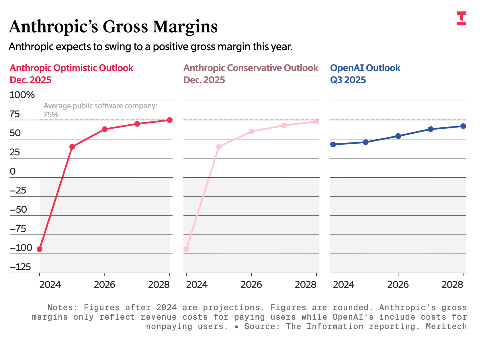 Anthropic is expecting its gross margins to rise to ~63% in 2026 and ~70% in 2027, up from ~40% in 2025