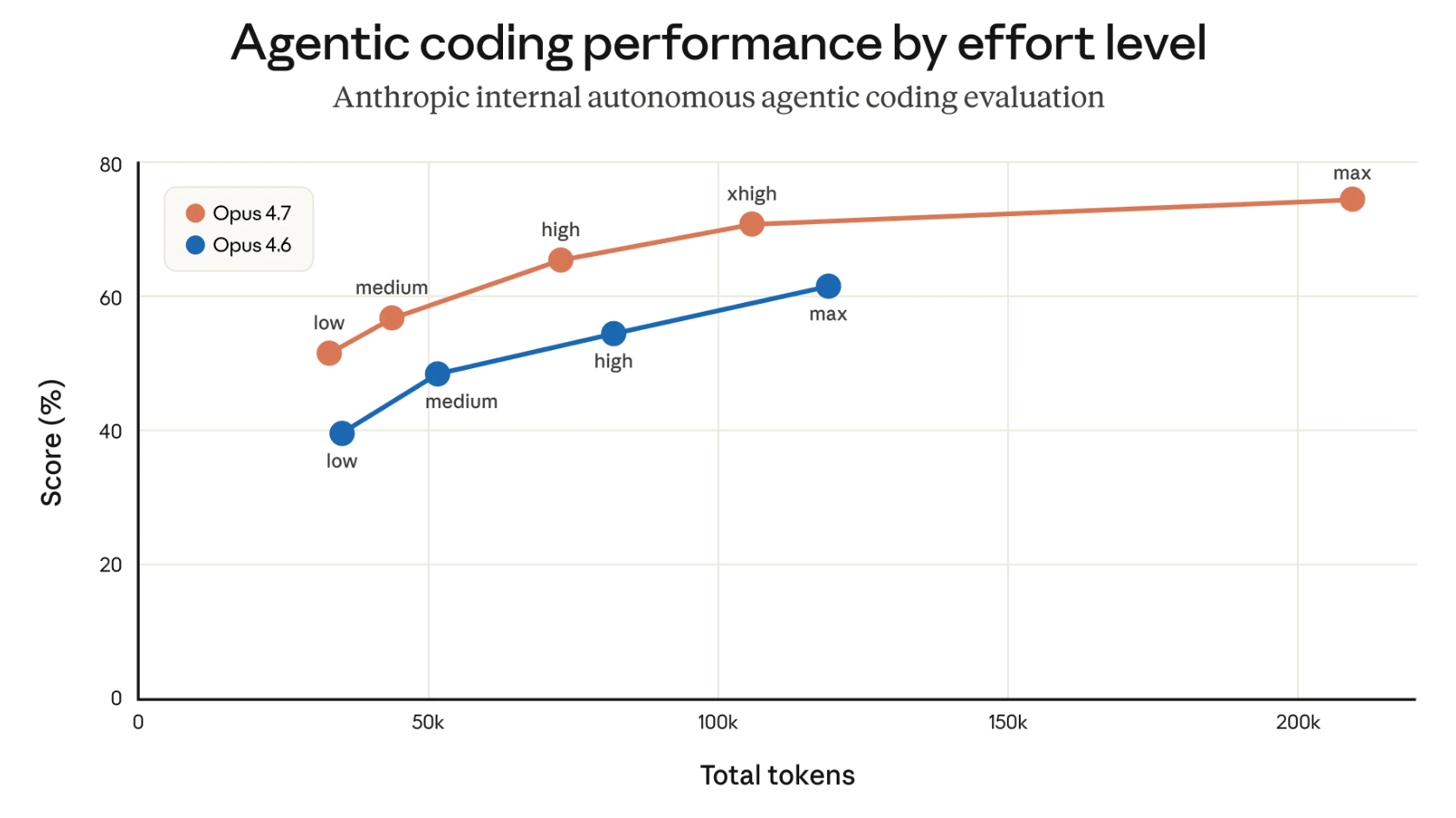Default reasoning set to “xhigh” for Opus 4.7 and “high” for other models to boost intelligence: