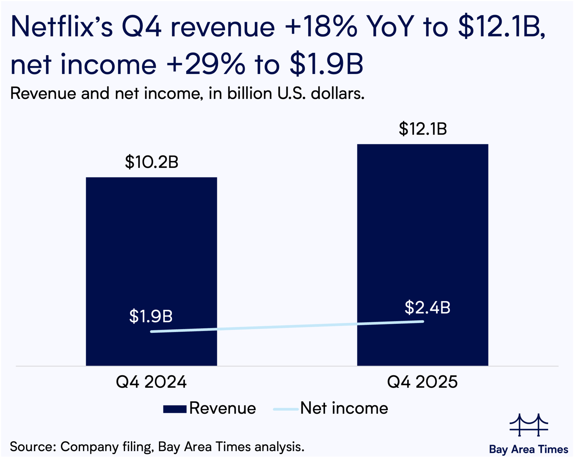 4. Netflix Q4 revenue +18% YoY to $12.1B, net income +29% as outlook turns cautious