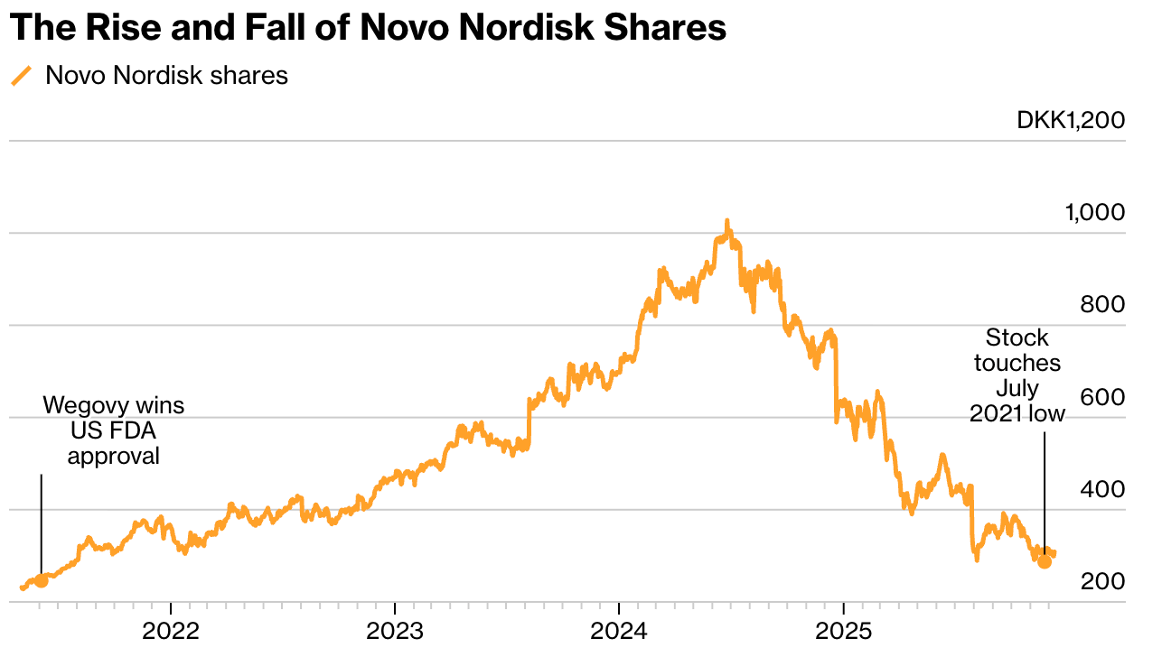 - Novo Nordisk heads for worst-ever year after 50% stock plunge