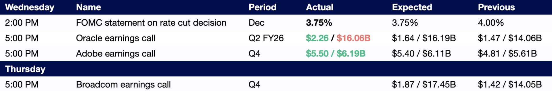 NVIDIA and AMD -1%, while CoreWeave -3% after Oracleâs weaker-than-expected revenue despite booming AI demand.