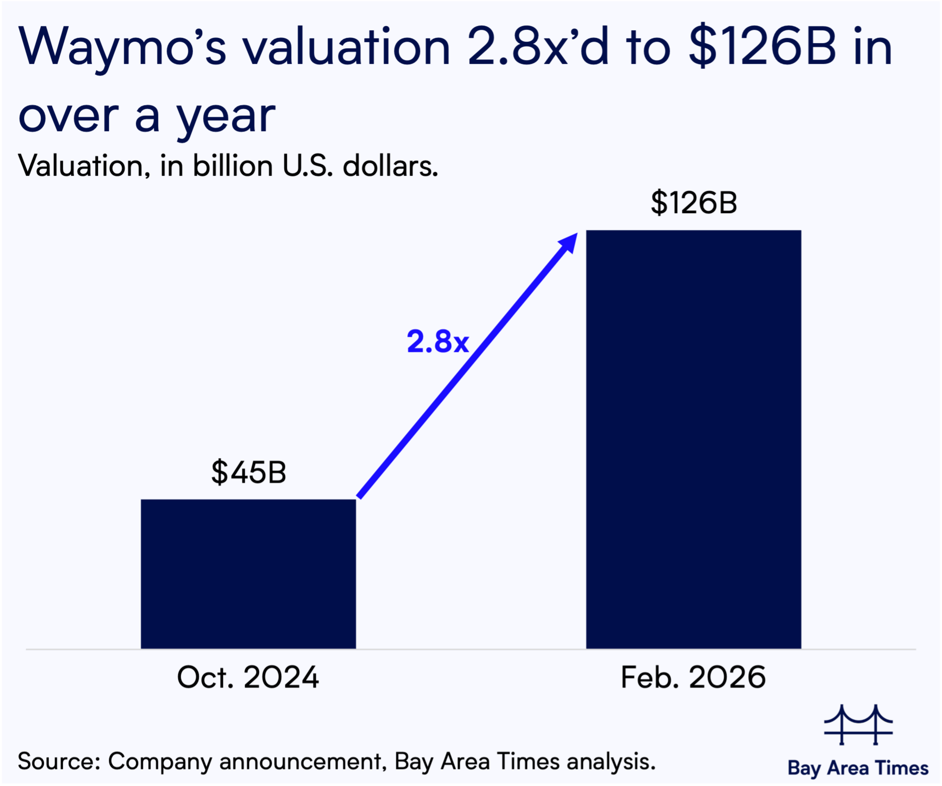 2. Waymo raises $16B at $126B post-money valuation to expand robotaxi business