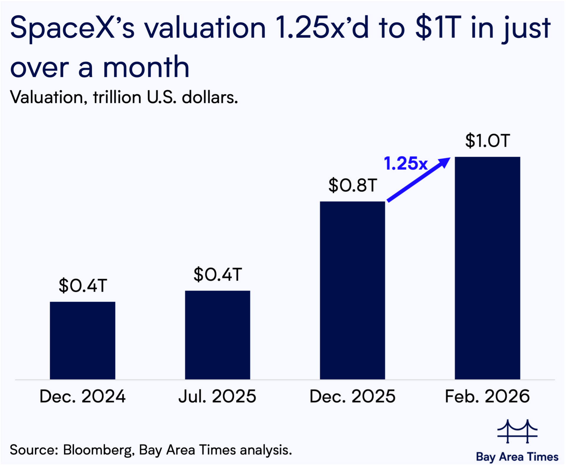 1. Elon’s SpaceX ($1T) combines with xAI ($250B) at $1.25T combined valuation