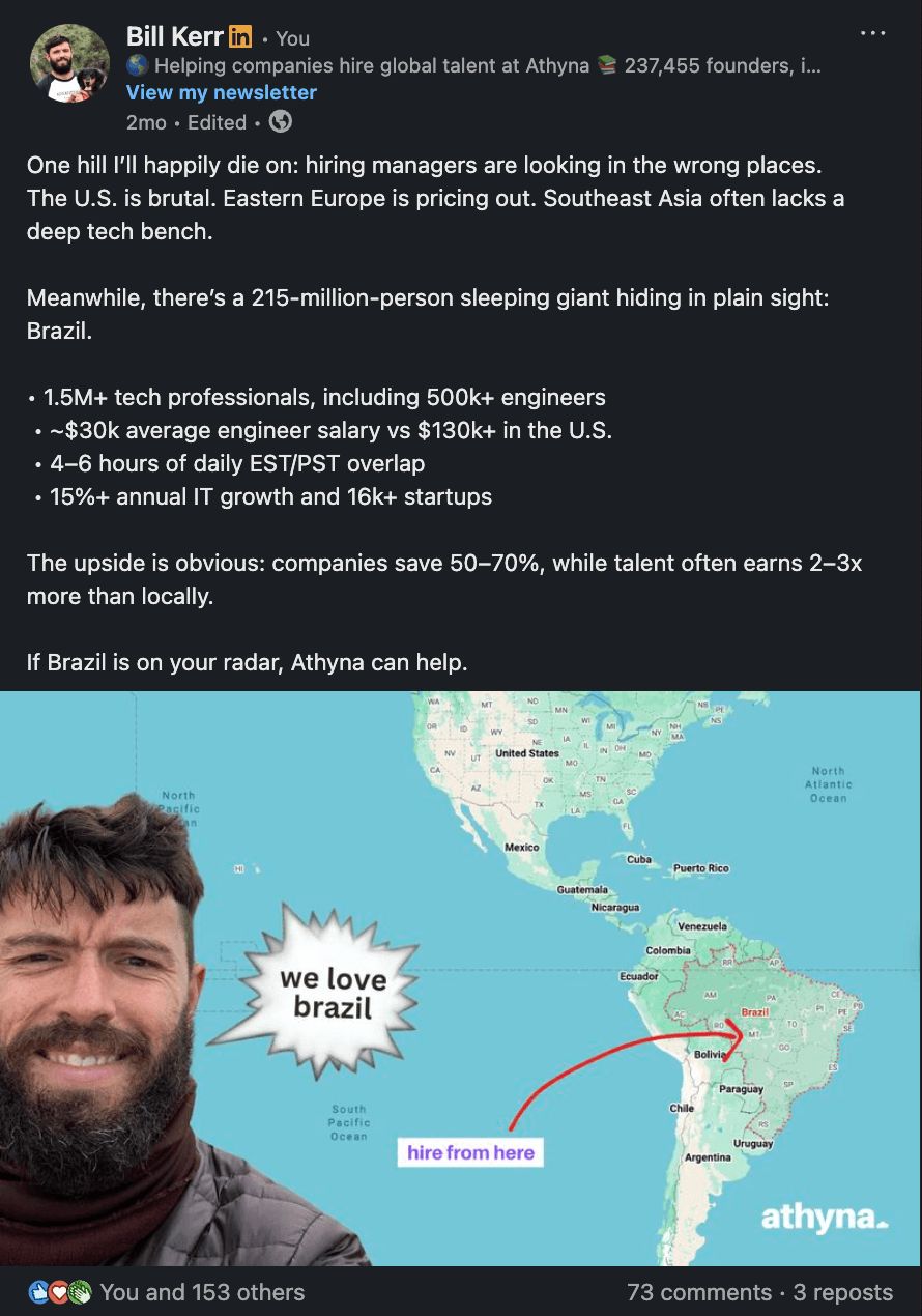 Exactly. Athyna Intelligence is a natural extension of what we’ve been building for years. Athyna has long focused on sourcing, vetting, and operating global talent, particularly across Latin America. We’ve built AI-powered systems to quickly match thousands of talents across hundreds of companies.