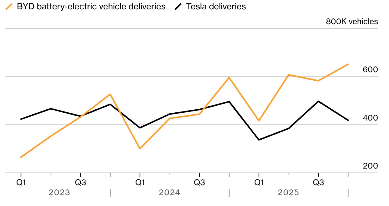 Chinaās BYD surpassed Tesla with 650.8K EV sales in Q4