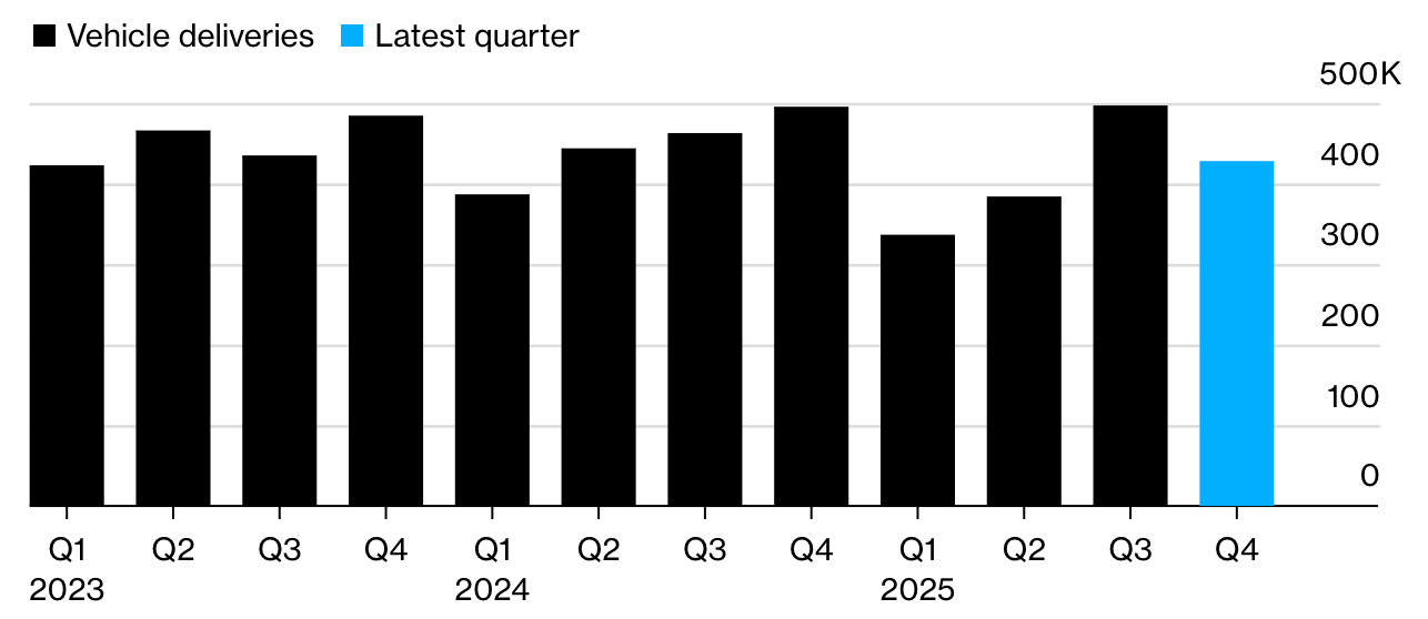 - Teslaās China factory shipments -7% YoY to 851,732 vehicles in 2025