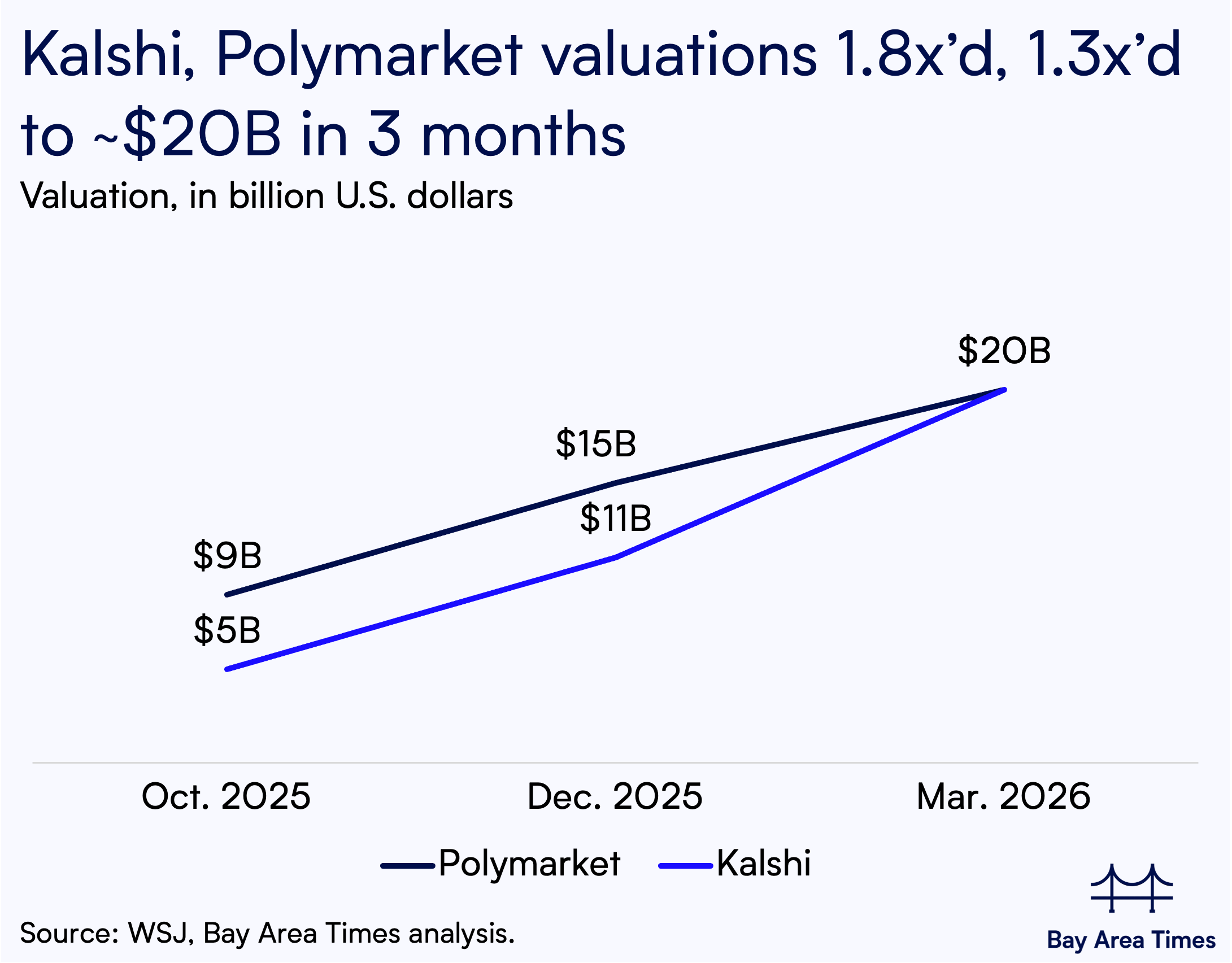 3. Kalshi, Polymarket said to seek ~$20B valuations in fundraising talks