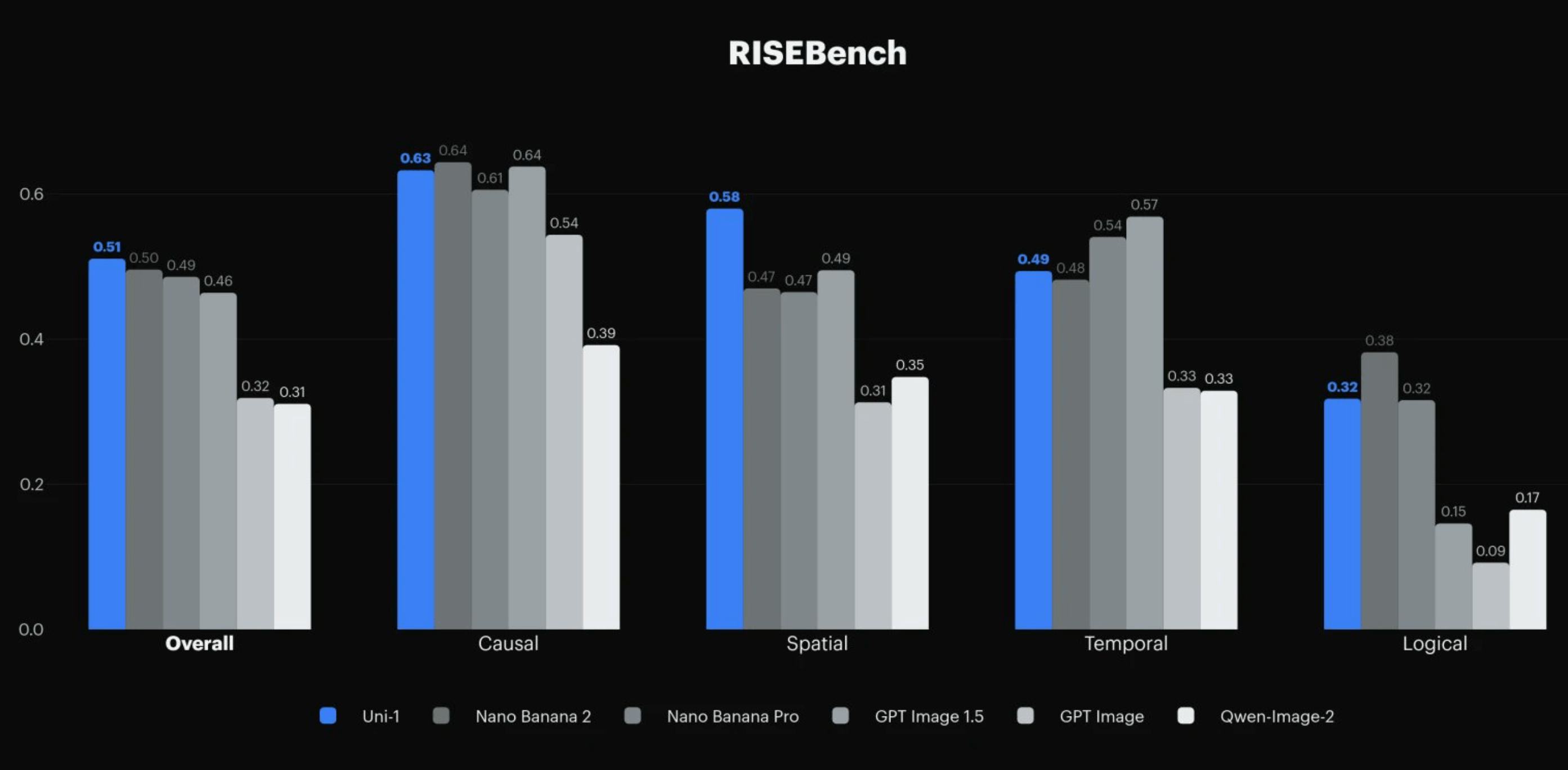 Uni-1 topped Google’s Nano Banana 2 and OpenAI’s GPT Image 1.5 on the RISEBench test results shared by Luma: