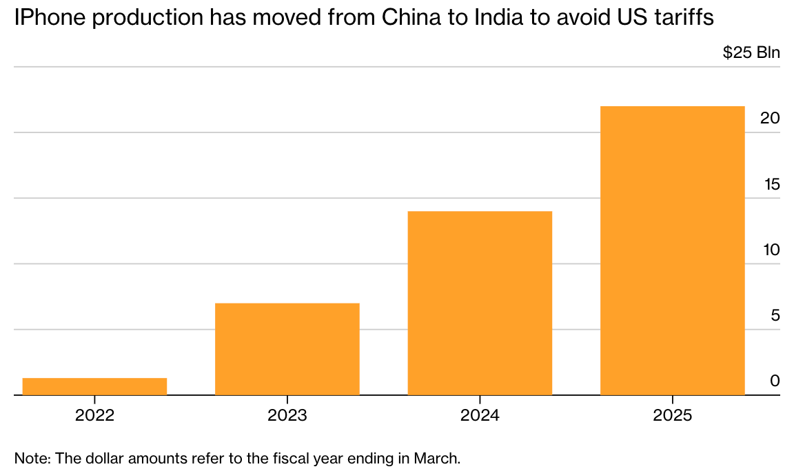 Apple’s iPhone production in India reportedly hit $22B in 2025, up from $14B in 2024: